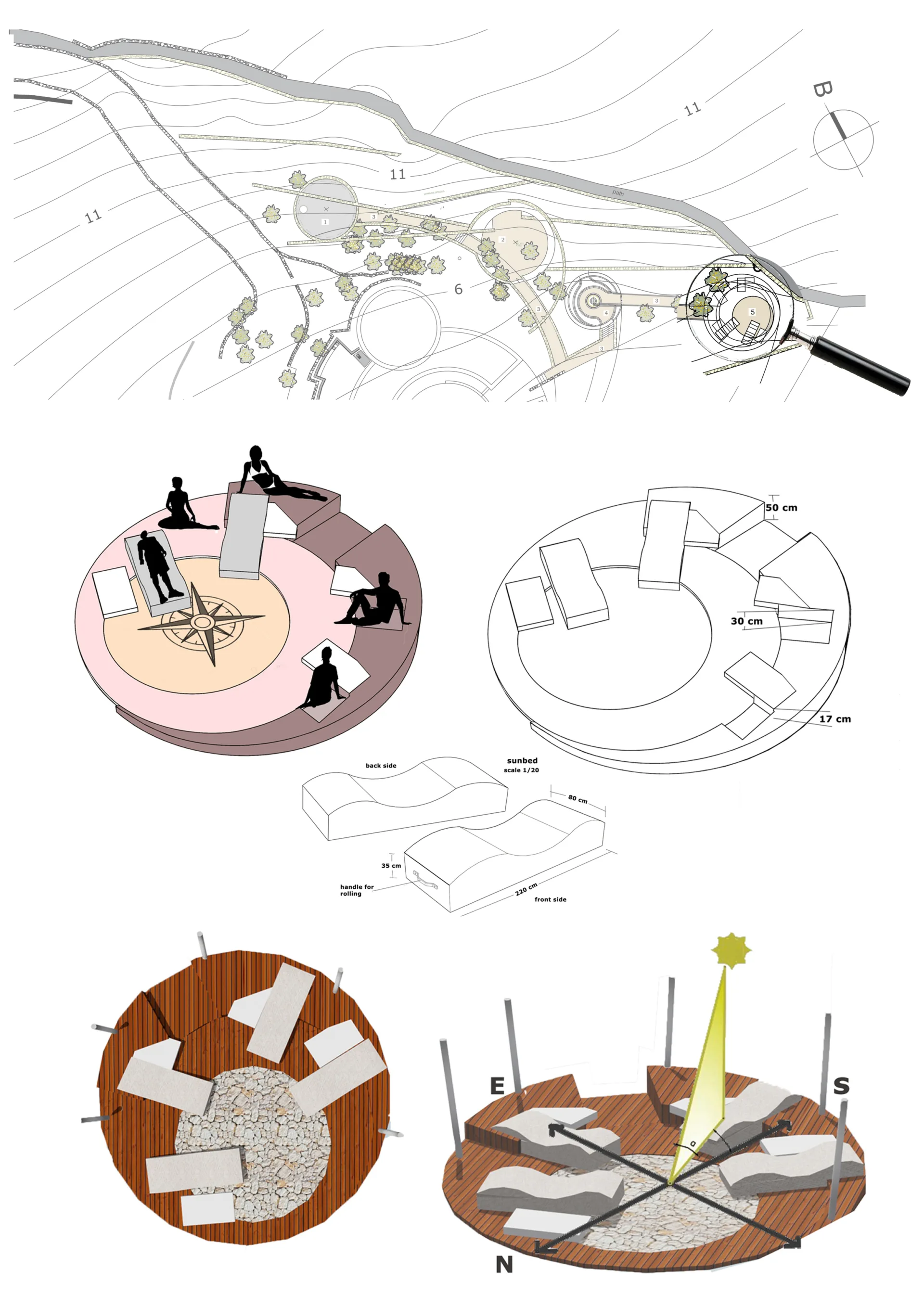 The sunbed is part of the general planning in the location of the relaxation areas which been spotted at the natural clearings that already exist.