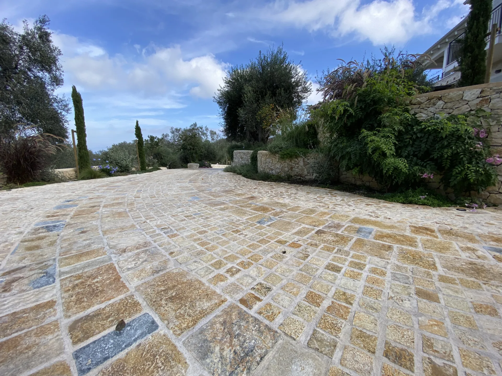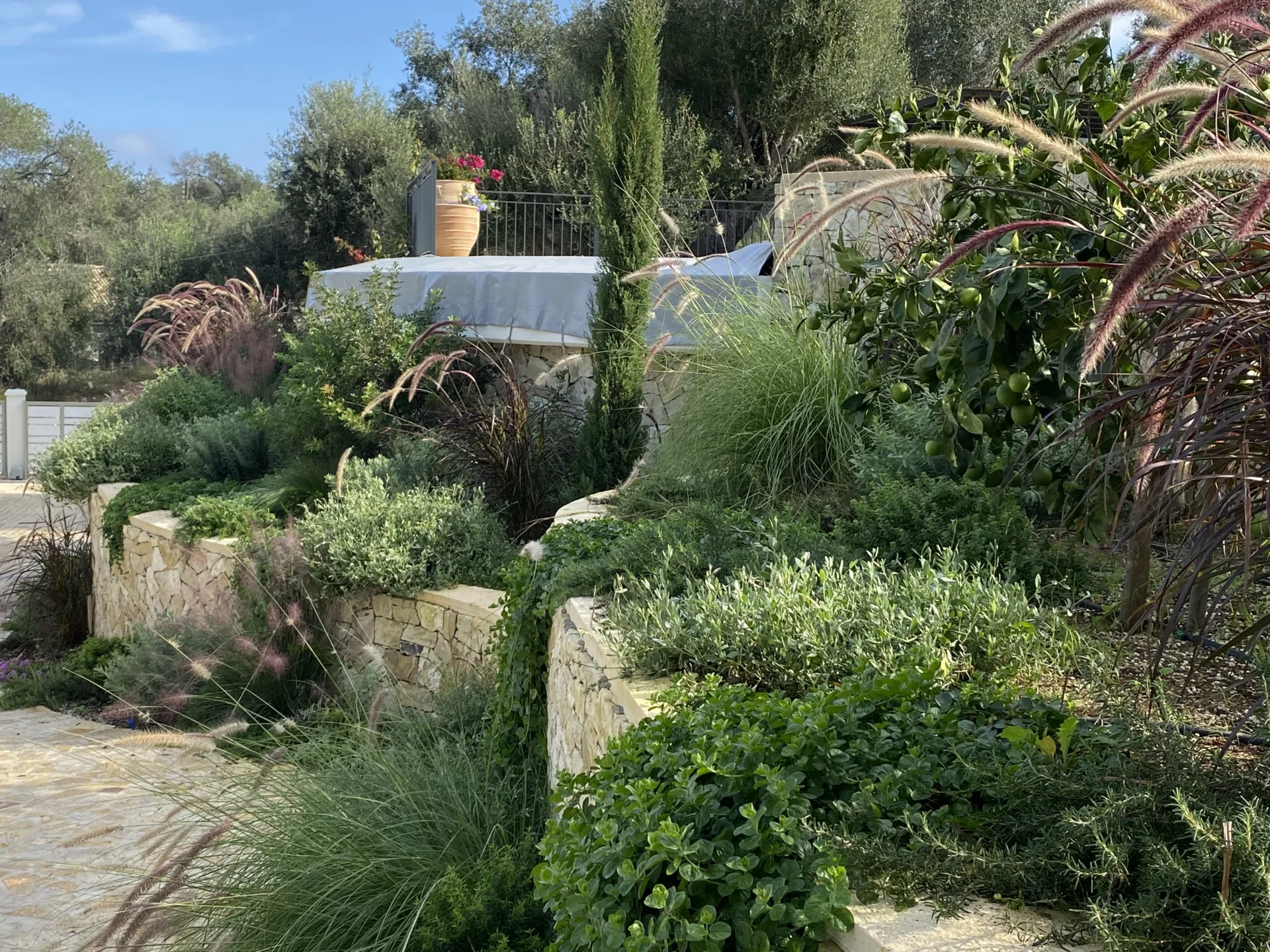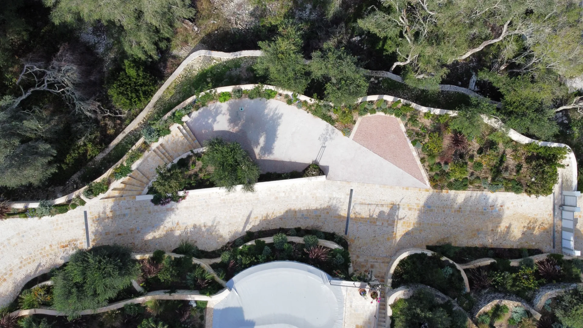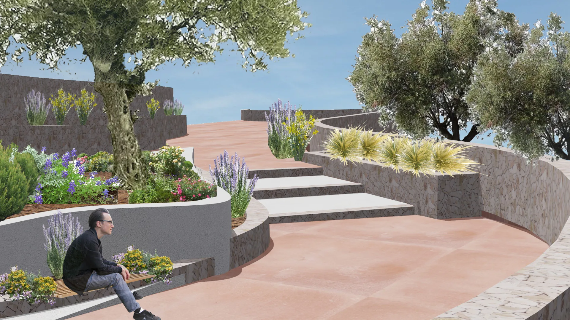The requirements of the space had to cover the configuration of a visitor’s parking lot and the creation of the garden. The space was studied in order to meet the desire of the local traditional materials of the island’s stone with intent on breaking the monotony of the large design axes. The outdoor was restored with a wealth of both hard and soft materials emphasizing the quality. The adventurous terraced of jardiniers combined with the restoration of the island’s old drystones gives a taste of Ionian traditional elegance old and new.